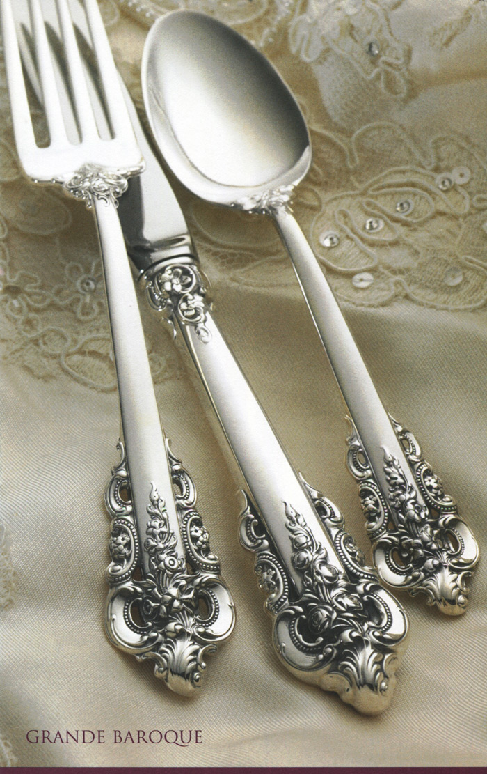 Wallace Sterling Grande Baroque - Shop grande baroque (sterling, hollowware, 1 hallmark) silver & flatware by wallace silver at replacements, ltd.. This sterling silver ornament will add a beautiful touch of joy to a holiday p. Skip to the end of the images gallery. The set features five pieces including a salad fork, a dinner fork, a knife with stainless blade, a soup spoon, and a dessert spoon. Antique cupboard is the place to find sterling silver flatware, and silverware. 8 salad forks, 8 place forks, 8 place knives, 8 place spoons and 8 teaspoons.